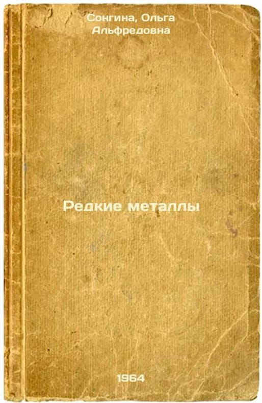 Songina O.A. Rare Metals. In Russian /Songina O.A. Redkie metally. Second Edition, revised and supplemented by M. M.: State Scientific and Technical Publishing of Literature on Iron and Nonferrous Metallurgy, 1955. 384c. We have thousands of titles and often several copies of each title may be available. Please feel free to contact us for a detailed description of the copies available. SKUalbb5f08b21b947e374.