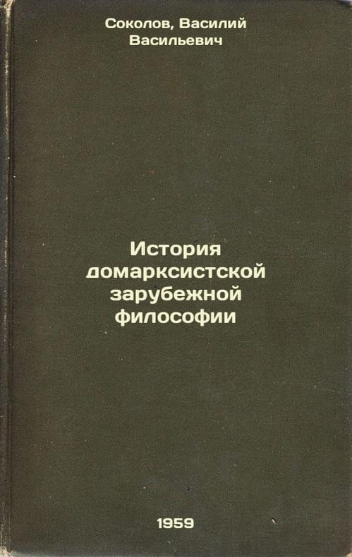 Short description: In Russian. Sokolov, Vasily Vasilievich. History of Pre-Marxist Foreign Philosophy. Moscow: Publishing House of Moscow, 1959. Please feel free to contact us for a detailed description of the copies available. SKU8442078