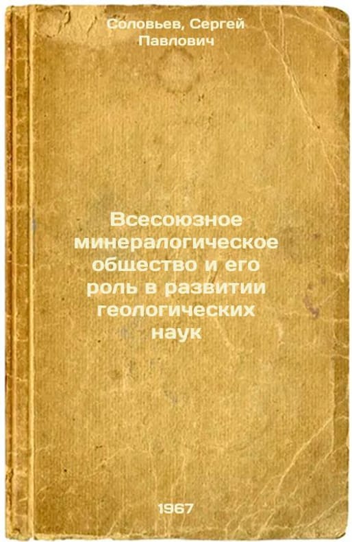 Short description: In Russian. Solovyov, Sergey Pavlovich. All-Union Mineralogical Society and its Role in the Development of Geological Sciences. Leningrad: Science. Leningrad Division, 1967. Vsesoyuznoe mineralogicheskoe obshchestvo i ego rol' v razvitii geologicheskikh nauk. In Russian /All-Union Mineralogical Society and its role in the development of geological sciences . The image is provided for reference only. It may reflect condition of one of the available copies or only help in identifying the edition. Please feel free to contact us for a detailed description of the copies available. SKU8442257