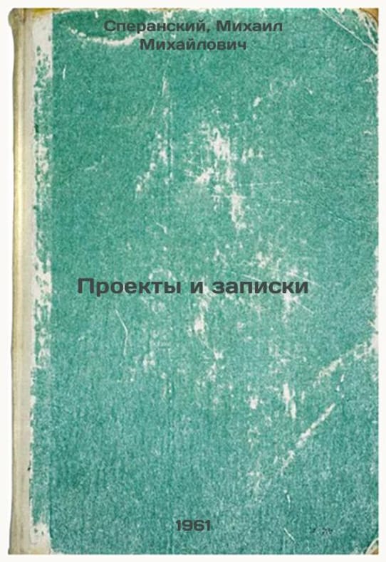 "Short description: In Russian. Speransky, Mikhail Mikhailovich. Projects and Notes. Moscow; Leningrad: Publishing House of Acad. sciences of the USSR. Leningrad Division, 1961. The image is provided for reference only. It may reflect condition of one of the available copies or only help in identifying the edition. Please feel free to contact us for a detailed description of the copies available. SKU8443553"