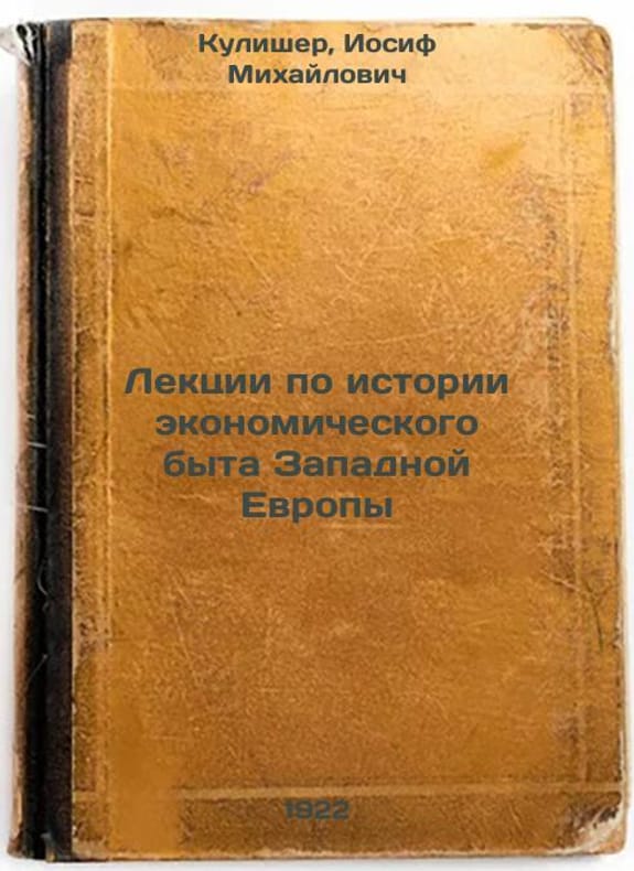 Short description: In Russian. Kulisher, Joseph Mikhailovich. Lectures on the history of economic life in Western Europe: Petrograd: type of tv Public utility, 1916. Lektsii po istorii ekonomicheskogo byta Zapadnoy Evropy. In Russian /Lectures on the history of economic life in Western Europe. The image is provided for reference only. It may reflect condition of one of the available copies or only help in identifying the edition. Please feel free to contact us for a detailed description of the copies available. SKU4211167