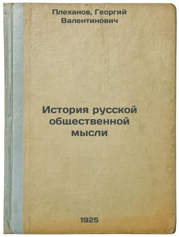"Short description: In Russian. Plekhanov, Georgy Valentinovich. History of Russian Public Thought. Moscow; Leningrad: Gudok, 1925. Istoriya russkoy obshchestvennoy mysli. In Russian /History of Russian Public Thought. The image is provided for reference only. It may reflect condition of one of the available copies or only help in identifying the edition. Please feel free to contact us for a detailed description of the copies available. SKU8677433"