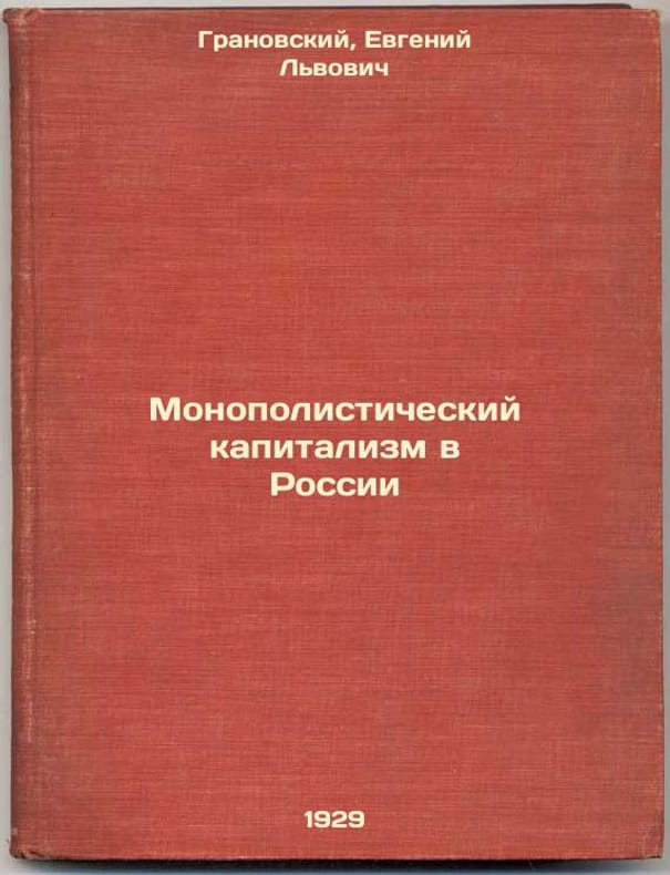 Short description: In Russian. Granovsky, Evgeniy Lvovich. Monopoly capitalism in Russia. Leningrad: Priboy, 1929: type. The printing yard of the State Publishing House. Monopolisticheskiy kapitalizm v Rossii. In Russian /Monopoly Capitalism in Russia. The image is provided for reference only. It may reflect condition of one of the available copies or only help in identifying the edition. Please feel free to contact us for a detailed description of the copies available. SKU9023901