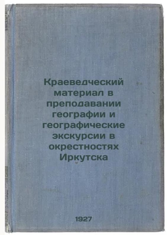 Short description: In Russian. Diaghilev, Victor Filippovich. Local History in Teaching Geography and Geographic Excursions around Irkutsk. Irkutsk: Section of School Local History, VARGO, 1927: type of publication Power of Labor. Kraevedcheskiy material v prepodavanii geografii i geograficheskie ekskursii v okrestnostyakh Irkutska. In Russian /Local History in Teaching Geography and Geographic Excursions around Irkutsk. The image is provided for reference only. It may reflect condition of one of the available copies or only help in identifying the edition. Please feel free to contact us for a detailed description of the copies available. SKU9028788