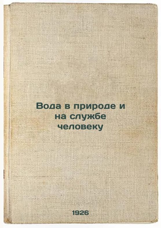 "Short description: In Russian. Ulyaninsky, Vladimir Yurievich. Water in Nature and in the Service of Man. Moscow; Leningrad: State Publishing House, 1926. Voda v prirode i na sluzhbe cheloveku. In Russian /Water in Nature and in the Service of Man. The image is provided for reference only. It may reflect condition of one of the available copies or only help in identifying the edition. Please feel free to contact us for a detailed description of the copies available. SKU9110352"