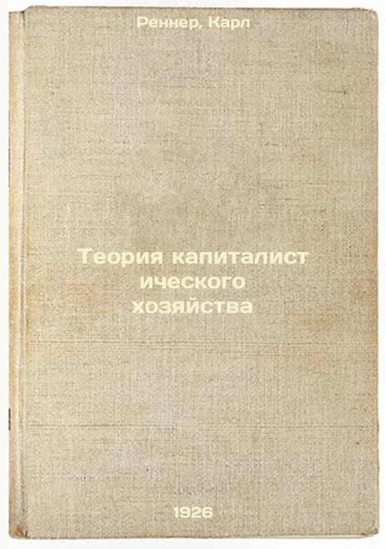 "Short description: In Russian. Renner, Karl. The Theory of Capitalist Economy. Moscow; Leningrad: State Publishing House, 1926. Teoriya kapitalisticheskogo khozyaystva. In Russian /The Theory of Capitalist Economy. The image is provided for reference only. It may reflect condition of one of the available copies or only help in identifying the edition. Please feel free to contact us for a detailed description of the copies available. SKU9133588"