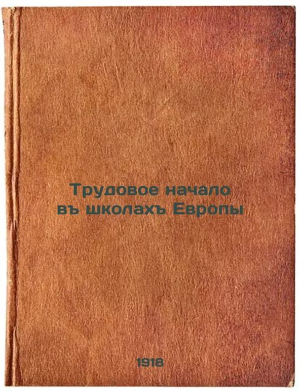 Short description: In Russian. Yanzhul, Ekaterina Nikolaevna. The Beginning of Work in Schools in Europe: Moscow: Publishing House of the People's Teacher, 1918. Trudovoe nachalo v shkolakh Evropy. In Russian /Start of Work in Schools in Europe. The image is provided for reference only. It may reflect condition of one of the available copies or only help in identifying the edition. Please feel free to contact us for a detailed description of the copies available. SKU9147508