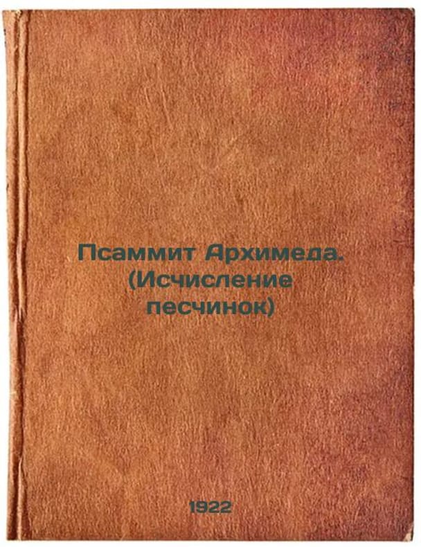 Short description: In Russian. Popov, Georgy Nikolaevich. Psummit of Archimedes. (Grain Calculation). Petrograd: The sower of E. V. Vysokoye, 1922. Psammit Arkhimeda. (Ischislenie peschinok). In Russian /Archimedes Psummit. (Grain Calculation). The image is provided for reference only. It may reflect condition of one of the available copies or only help in identifying the edition. Please feel free to contact us for a detailed description of the copies available. SKU9167978