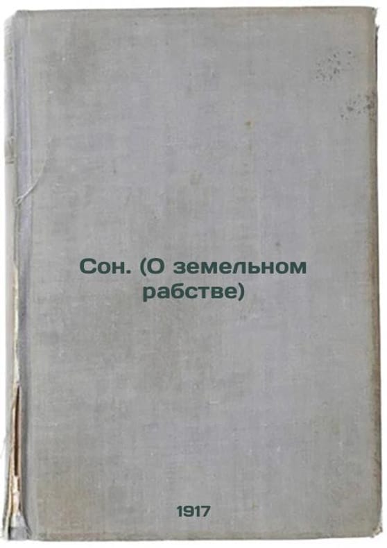 Short description: In Russian. Tolstoy, Lev Nikolaevich. Dream (On Land Slavery). Moscow: 1917: type of Zadruga tv. You are welcome to reach out to us for a detailed description of the copies currently available. Delivery of this book may take longer than usual including extended processing and pre-shipping time, no expedited shipping is available. Please advise us if you have a set date or a deadline to receive your order.SKU9175186