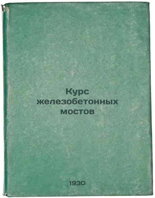 "Short description: In Russian. Perederiy, Grigory Petrovich. Course of reinforced concrete bridges. Moscow; Leningrad: State Publishing House, 1930. You are welcome to reach out to us for a detailed description of the copies currently available. Delivery of this book may take longer than usual including extended processing and pre-shipping time, no expedited shipping is available. Please advise us if you have a set date or a deadline to receive your order.SKU9226935"