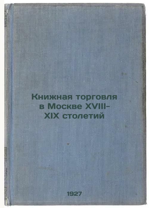 Short description: In Russian. Simoni, Pavel Konstantinovich. Book Trade in Moscow in the 18th-19th Centuries. Leningrad: Leningrad Bibliophiles, 1927: State Academic Type. Knizhnaya torgovlya v Moskve XVIII-XIX stoletiy. In Russian /Book Trade in Moscow in the 18th-19th Centuries. Please feel free to contact us for a detailed description of the copies available. SKU9237014