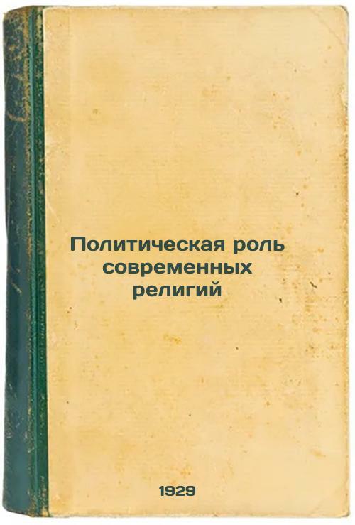 Short description: In Russian. Sheinman, Mikhail Markovich. The Political Role of Modern Religions. Moscow: Bezbozhnik, 1929: Central Polygraphic School of the Borshevsky Federal University, Mospolygraph. Politicheskaya rol' sovremennykh religiy. In Russian /The Political Role of Modern Religions. Please feel free to contact us for a detailed description of the copies available. SKU9252523