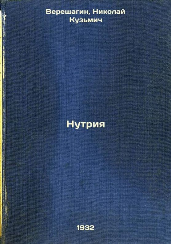 Short description: In Russian. Vereshchagin, Nikolai Kuzmich. Nutria. Moscow: Vneshtorgizdat, 1932: 13 type. Mosoblpolygraph. Please feel free to contact us for a detailed description of the copies available. SKU9273161