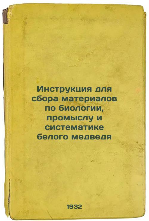 Short description: In Russian. Vorobyova, Klavdiya Evgenievna. Instructions for collecting materials on the biology, fishing, and systematics of the polar bear. Leningrad: Publishing House of the Arctic Institute, 1932: type. Acad. sciences of the USSR. You are welcome to reach out to us for a detailed description of the copies currently available. Delivery of this book may take longer than usual including extended processing and pre-shipping time, no expedited shipping is available. Please advise us if you have a set date or a deadline to receive your order.SKU9273899