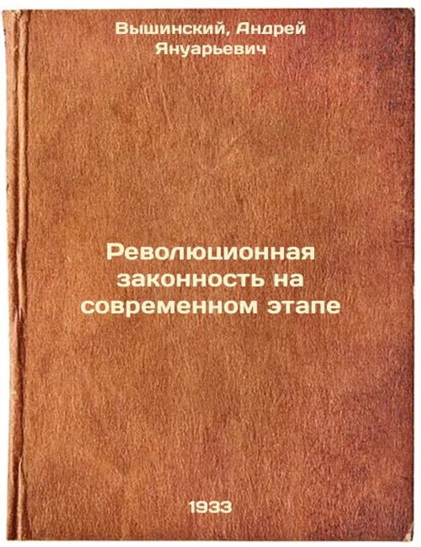 Short description: In Russian. Vyshinsky, Andrey Yanuarievich. Revolutionary legality at the present stage. Moscow: Soviet legislation, 1933. Revolyutsionnaya zakonnost' na sovremennom etape. In Russian /Revolutionary legality in the modern era . The image is provided for reference only. It may reflect condition of one of the available copies or only help in identifying the edition. Please feel free to contact us for a detailed description of the copies available. SKU9277958