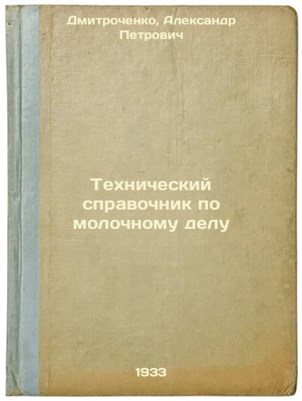 "Short description: In Russian. Dmitrochenko, Alexander Petrovich. Technical Guide to Dairy Business. Moscow; Leningrad: State Publishing House of Kolkh and Soviet Litas, 1933. Please feel free to contact us for a detailed description of the copies available. SKU9283412"