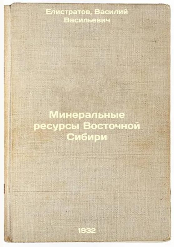 "Short description: In Russian. Elistratov, Vasily Vasilievich. Mineral Resources of Eastern Siberia. Moscow; Leningrad: Geological Publishing House, 1932. Please feel free to contact us for a detailed description of the copies available. SKU9284587"