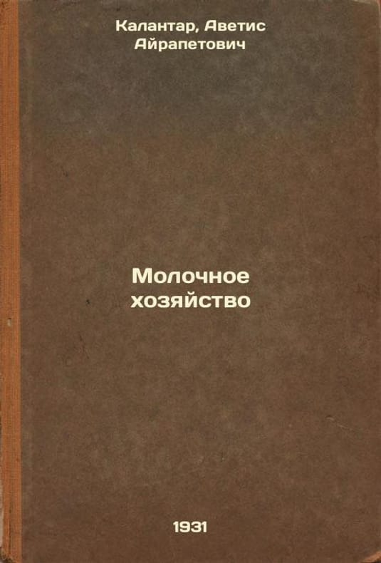 "Short description: In Russian. Kalantar, Avetis Airapetovich. Dairy farming. Moscow; Leningrad: Ogiz - State Publishing House of Agriculture and Collective Farm Co-op, 1931 (Moscow: type. The spark of revolution ). The image is provided for reference only. It may reflect condition of one of the available copies or only help in identifying the edition. Please feel free to contact us for a detailed description of the copies available. SKU9293692"