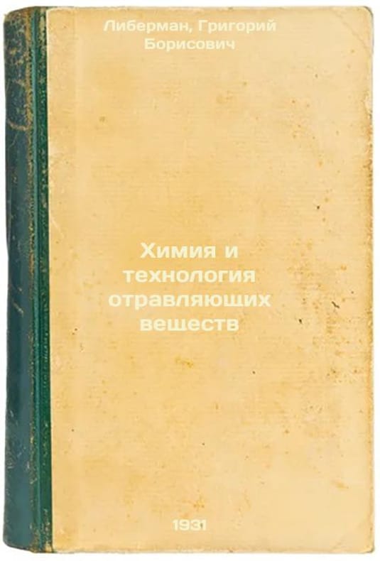 "Short description: In Russian. Liberman, Grigory Borisovich. Chemistry and Technology of Poisonous Substances. Moscow; Leningrad: Ogiz-State Scientific-Engineering Publishing House, 1931. Please feel free to contact us for a detailed description of the copies available. SKU9300682"