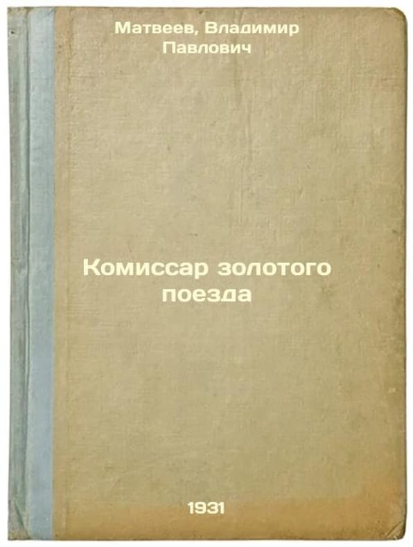 "Short description: In Russian. Matveev, Vladimir Pavlovich. The Commissioner of the Golden Train. Moscow; Leningrad: The Young Guard, 1931. Please feel free to contact us for a detailed description of the copies available. SKU9303031"
