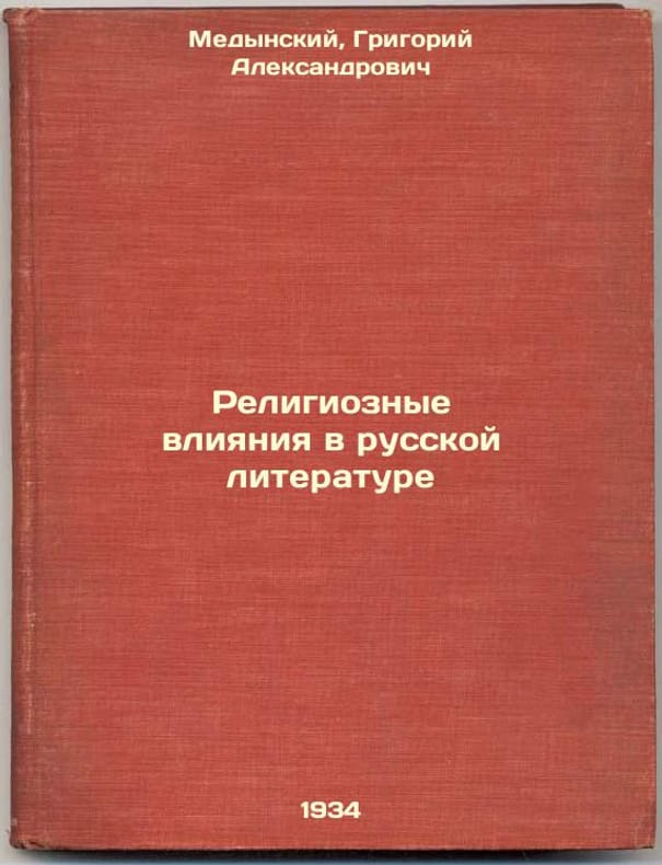 Short description: In Russian. Medynsky, Grigory Alexandrovich. Religious Influences in Russian Literature. Moscow: Hayz, 1933 in the Binding: 1934: Type. The Way of October. Religioznye vliyaniya v russkoy literature. In Russian /Religious Influences in Russian Literature . The image is provided for reference only. It may reflect condition of one of the available copies or only help in identifying the edition. Please feel free to contact us for a detailed description of the copies available. SKU9312686