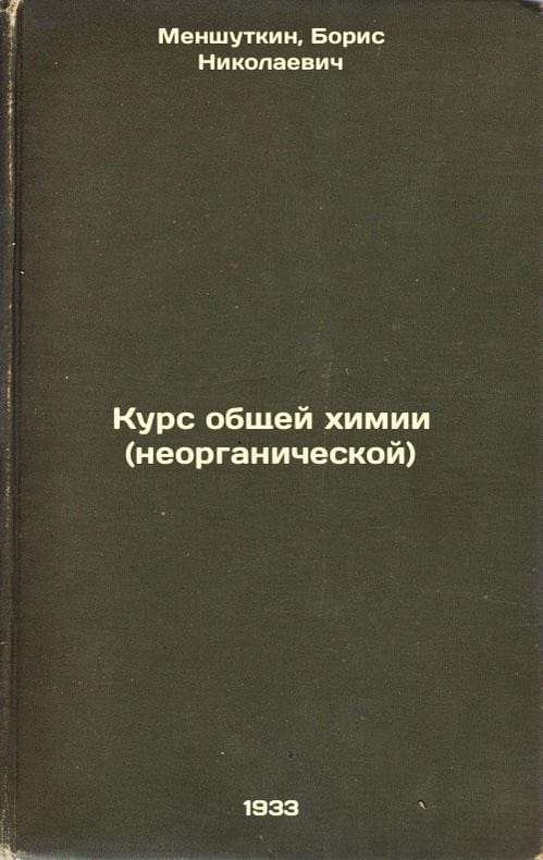 Short description: In Russian. Menshutkin, Boris Nikolaevich. Course of general chemistry (inorganic). Leningrad: State Chemtechnic Publishing House. Leningrad Branch, 1933: type named after Evg. Sokolova. Please feel free to contact us for a detailed description of the copies available. SKU9313097