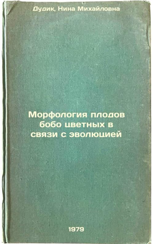 Short description: In Russian. Dudik, Nina Mikhailovna. Morphology of the Fruits of Colored Beans in Connection with Evolution. Kiev: Nauk Dumka, 1979 Morfologiya plodov bobo tsvetnykh v svyazi s evolyutsiey/Morphology of Coloured Bobo Fruits in Connection with Evolution In Russian. The image is provided for reference only. It may reflect condition of one of the available copies or only help in identifying the edition. Please feel free to contact us for a detailed description of the copies available. SKU992554