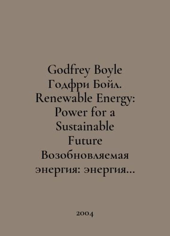 Godfrey Boyle Godfrey Boyle. Renewable Energy: Power for a Sustainable Future Renewable Energy: Energy for a Sustainable Future. In Russian /Godfrey Boyle Godfri Boyl. Renewable Energy: Power for a Sustainable Future Vozobnovlyaemaya energiya: energiya dlya ustoychivogo budushchego. Second Edition Oxford University Press 2004.You are welcome to reach out to us for a detailed description of the copies currently available. SKUalb0079d2ad669b7484.