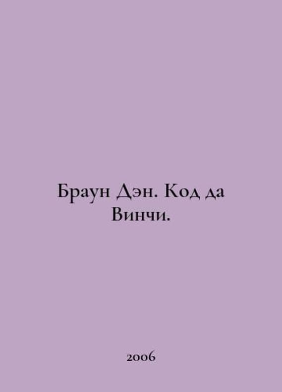 Brown Dan. The Da Vinci Code. Roman. In Russian /Braun Den. Kod da Vinchi. Roman. (ISBN: 5-17-027386-X 517027386) The secret code is hidden in the works of Leonardo da Vinci. Only it will help to find Christian shrines that confer unthinkable power and power. The key to the greatest mystery that mankind has wrestled with for centuries may be found in the novel The da Vinci Code. We have thousands of titles and often several copies of each title may be available. Please feel free to contact us for a detailed description of the copies available. SKUalbfe064fa95925d103.
