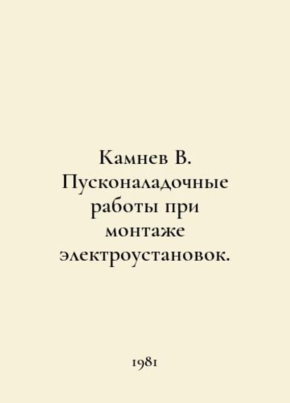 Kamnev V. Start-up and adjustment works during the installation of electrical installations. In Russian /Kamnev V. Puskonaladochnye raboty pri montazhe elektroustanovok. Edition 2, textbook M Higher School 1981.You are welcome to reach out to us for a detailed description of the copies currently available. SKUalb0399bd755b1b51f8.