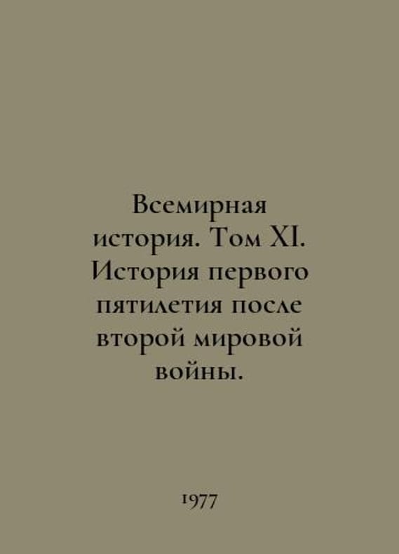 World History. Volume XI. The History of the First Five Years After World War II. In Russian /Vsemirnaya istoriya. Tom XI. Istoriya pervogo pyatiletiya posle vtoroy mirovoy voyny. Chief Editor Zhukov E.M. Edited by Chubaryan A.O., Volkov I.M., Ivanov R.F., Kim M., Poltavsky M.A., Fomin V.T. Moscow. Thought. 1977. You are welcome to reach out to us for a detailed description of the copies currently available. Delivery of this book may take longer than usual including extended processing and pre-shipping time, no expedited shipping is available. Please advise us if you have a set date or a deadline to receive your order.SKUalb05103a942e4e5f70