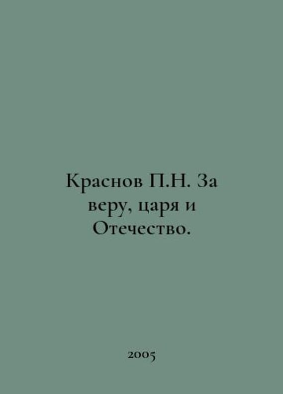 N. Krasnov For Faith, Czar, and Fatherland. In Russian /Krasnov N. Za veru, tsarya i Otechestvo. Moscow. Ladder 2005. You are welcome to reach out to us for a detailed description of the copies currently available. Delivery of this book may take longer than usual including extended processing and pre-shipping time, no expedited shipping is available. Please advise us if you have a set date or a deadline to receive your order.SKUalb05d6a59a67b238bd