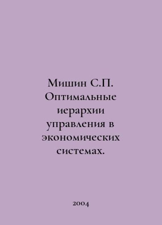 Mishin S. Optimal governance hierarchies in economic systems. In Russian /Mishin S. Optimalnye ierarkhii upravleniya v ekonomicheskikh sistemakh. M. PMSOFT. 2004.You are welcome to reach out to us for a detailed description of the copies currently available. SKUalb067e1158bcd9141b.