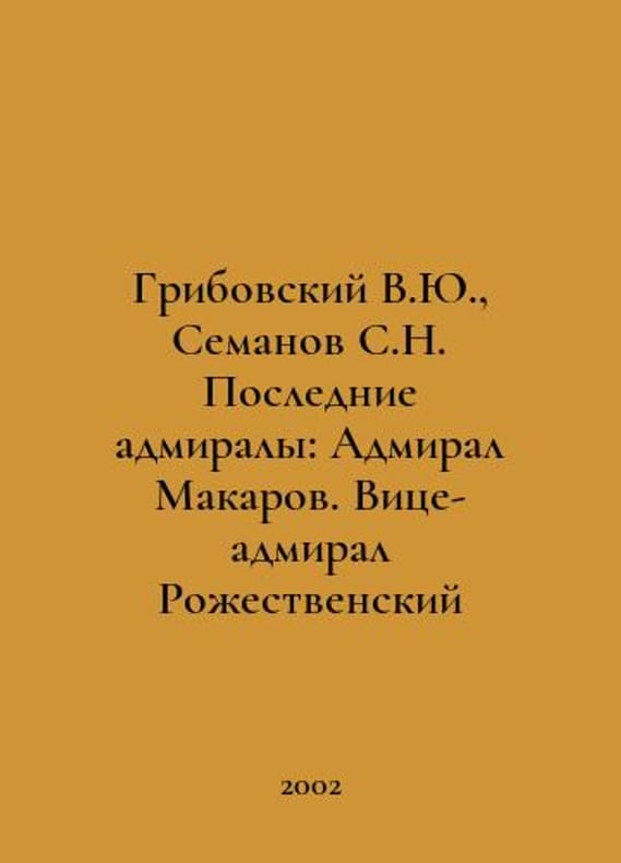 Gribovsky V.Yu., Semanov S.N. Last admirals: Admiral Makarov. Vice Admiral Rozhestvensky In Russian /Gribovskiy V.Yu., Semanov S.N. Poslednie admiraly: Admiral Makarov. Vitse-admiral Rozhestvenskiy Series: ACT Military History Library 2002. You are welcome to reach out to us for a detailed description of the copies currently available. Delivery of this book may take longer than usual including extended processing and pre-shipping time, no expedited shipping is available. Please advise us if you have a set date or a deadline to receive your order.SKUalb073248ce6b94da93