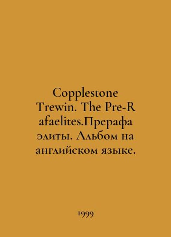 Copplestone Trewin. The Pre-Rafaelites.Pre-Raphaelites. An album in English. In Russian /Copplestone Trewin. The Pre-Rafaelites.Prerafaelity. Albom na angliyskom yazyke. Singapore Regency House Publishing 1999. You are welcome to reach out to us for a detailed description of the copies currently available. Delivery of this book may take longer than usual including extended processing and pre-shipping time, no expedited shipping is available. Please advise us if you have a set date or a deadline to receive your order.SKUalb0795b71e46983e48