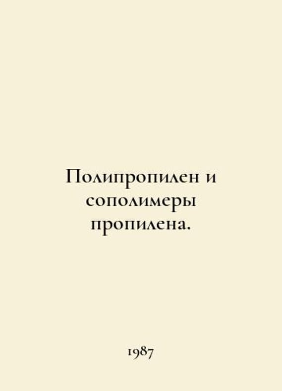 Polypropylene and propylene copolymers. In Russian /Polipropilen i sopolimery propilena. Guest 26996-86 M Standard Edition 1987..You are welcome to reach out to us for a detailed description of the copies currently available. Delivery of this book may take longer than usual including extended processing and pre-shipping time, no expedited shipping is available. Please advise us if you have a set date or a deadline to receive your order. SKUalb08eb7e5421593548