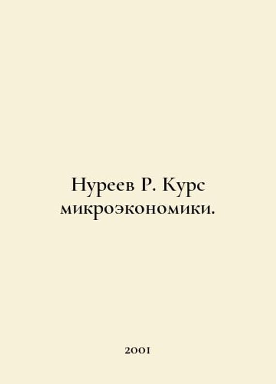 Nureyev R. Course of Microeconomics. In Russian /Nureev R. Kurs mikroekonomiki. Textbook, edition 2 M 2001.You are welcome to reach out to us for a detailed description of the copies currently available. SKUalb0a086522a7b8b262.