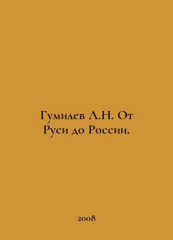Gumilev L.N. From Russia to Russia. In Russian /Gumilev L.N. Ot Rusi do Rossii. M. AST. 2004. 415 p.We have thousands of titles and often several copies of each title may be available. Please feel free to contact us for a detailed description of the copies available.SKUalb0b248d627b108a95.