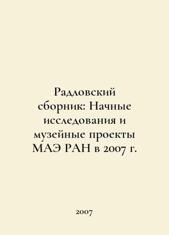 Radlovsky Digest: National Research and Museum Projects of the MAE RAS in 2007 In Russian /Radlovskiy sbornik: Nachnye issledovaniya i muzeynye proekty MAE RAN v 2007 g. St. Petersburg: Soviet Russia, 2007. You are welcome to reach out to us for a detailed description of the copies currently available. Delivery of this book may take longer than usual including extended processing and pre-shipping time, no expedited shipping is available. Please advise us if you have a set date or a deadline to receive your order.SKUalb0bd59626fb7cf5ec