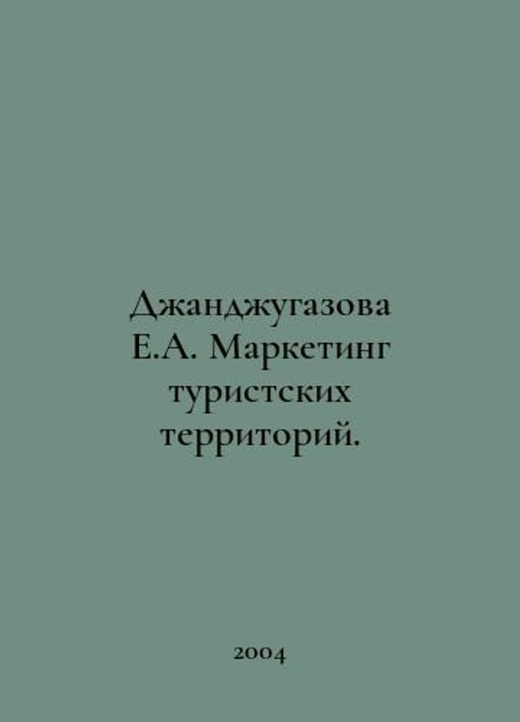 Dzhanjugazova E.A. Marketing of tourist areas. In Russian /Dzhandzhugazova E.A. Marketing turistskikh territoriy. M. TEIS 2004.You are welcome to reach out to us for a detailed description of the copies currently available. SKUalb0bdea994b8449e1e.