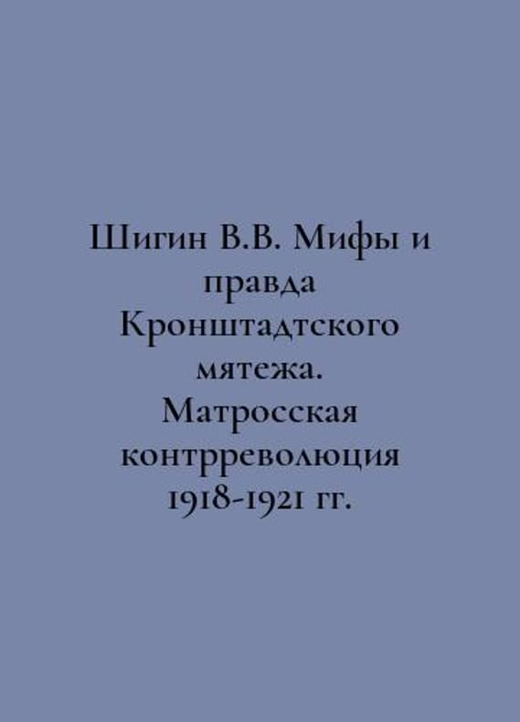 Shigin V.V. Myths and Truth of the Kronstadt Mutiny. Sailors Counterrevolution of 1918-1921 In Russian /Shigin V.V. Mify i pravda Kronshtadtskogo myatezha. Matrosskaya kontrrevolyutsiya 1918-1921 gg. Moscow Council 2021. 416 You are welcome to reach out to us for a detailed description of the copies currently available. Delivery of this book may take longer than usual including extended processing and pre-shipping time, no expedited shipping is available. Please advise us if you have a set date or a deadline to receive your order.SKUalb0c8ea2ff2f7c28a2