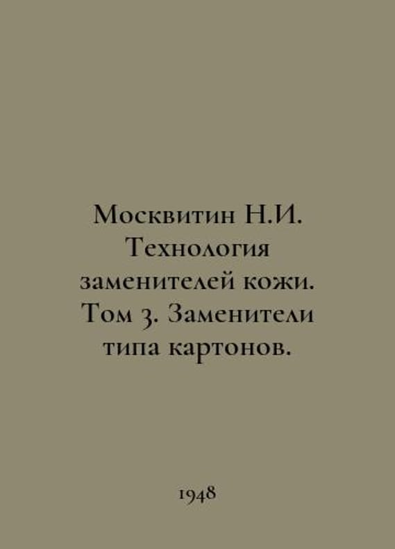 Moskvitin N.I. Leather Substitution Technology. Volume 3. Cardboard Substitutes. In Russian /Moskvitin N.I. Tekhnologiya zameniteley kozhi. Tom 3. Zameniteli tipa kartonov. Textbook. L.-M. Gizlegprom. 1948..You are welcome to reach out to us for a detailed description of the copies currently available. Delivery of this book may take longer than usual including extended processing and pre-shipping time, no expedited shipping is available. Please advise us if you have a set date or a deadline to receive your order. SKUalb0ce5661517fd4513
