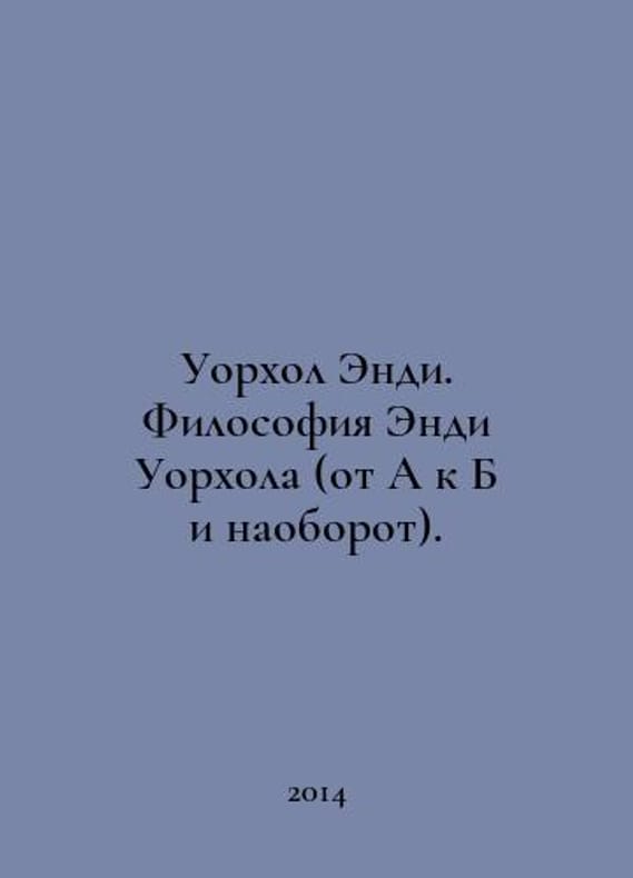 Andy Warhol: Andy Warhols Philosophy (from A to B and vice versa). In Russian /Uorkhol Endi. Filosofiya Endi Uorkhola (ot A k B i naoborot). Translated from English by G. Seversky. M. Ad Marginem. 2014 year. You are welcome to reach out to us for a detailed description of the copies currently available. Delivery of this book may take longer than usual including extended processing and pre-shipping time, no expedited shipping is available. Please advise us if you have a set date or a deadline to receive your order.SKUalb0d4133d7dacd2169