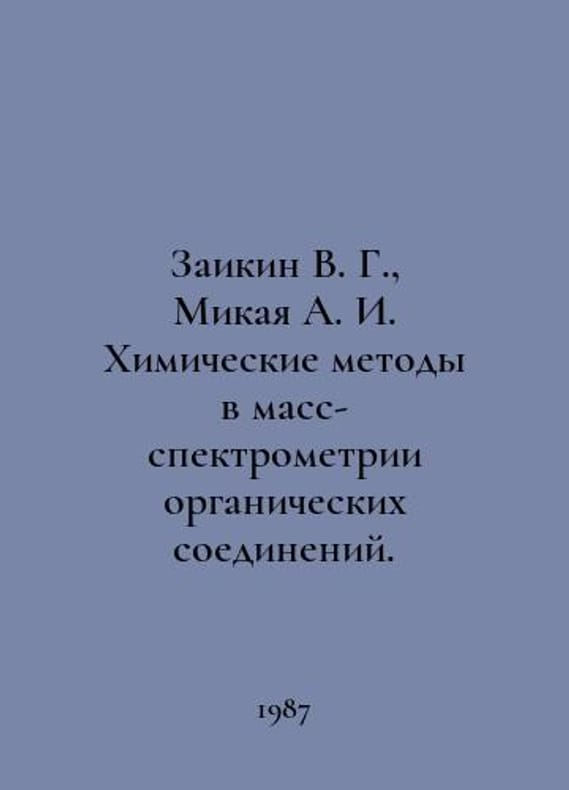 Zaikin V. G., Mikaya A. I. Chemical methods in mass spectrometry of organic compounds. In Russian /Zaikin V. G., Mikaya A. I. Khimicheskie metody v mass-spektrometrii organicheskikh soedineniy. Topchiev Institute of Petrochemical Synthesis. M. Science 1987..You are welcome to reach out to us for a detailed description of the copies currently available. Delivery of this book may take longer than usual including extended processing and pre-shipping time, no expedited shipping is available. Please advise us if you have a set date or a deadline to receive your order. SKUalb0d9eca8b43672c58