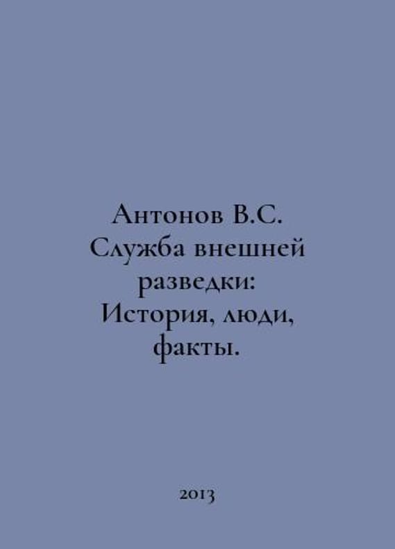 Antonov V.S. Foreign Intelligence Service: History, People, Facts. In Russian /Antonov V.S. Sluzhba vneshney razvedki: Istoriya, lyudi, fakty. Series: Secrets of the secret services. M. Kuchkovo field. 2013. You are welcome to reach out to us for a detailed description of the copies currently available. Delivery of this book may take longer than usual including extended processing and pre-shipping time, no expedited shipping is available. Please advise us if you have a set date or a deadline to receive your order.SKUalb0db1b285c2d9805c