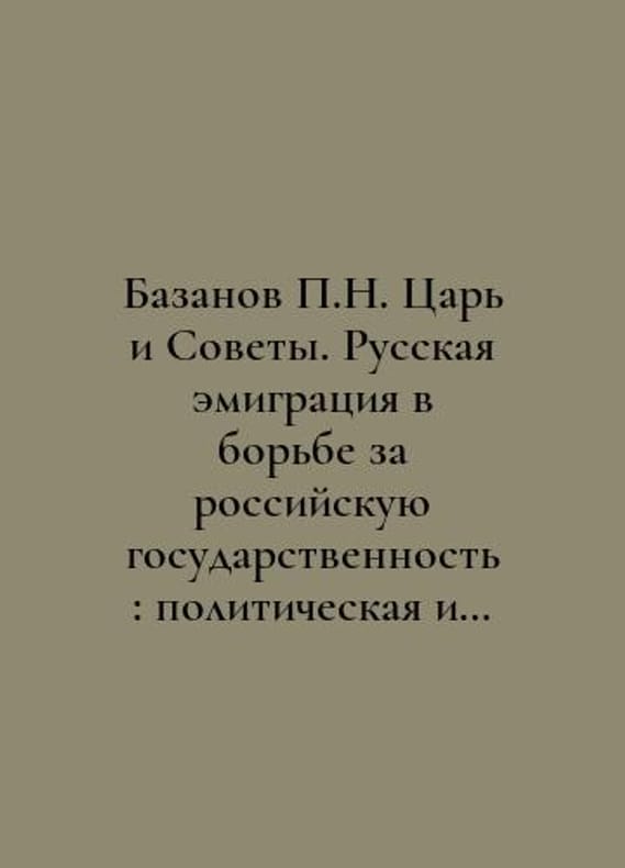 N. Bazanov, Tsar and Soviets: Russian emigration in the Struggle for Russian Statehood: Political and Publishing Activities. In Russian /Bazanov N. Tsar i Sovety: russkaya emigratsiya v borbe za rossiyskuyu gosudarstvennost: politicheskaya i izdatelskaya deyatelnost. 2nd ed., St. Petersburg RKhGA 2022, 322s. You are welcome to reach out to us for a detailed description of the copies currently available. Delivery of this book may take longer than usual including extended processing and pre-shipping time, no expedited shipping is available. Please advise us if you have a set date or a deadline to receive your order.SKUalb890b076782c0b3e7