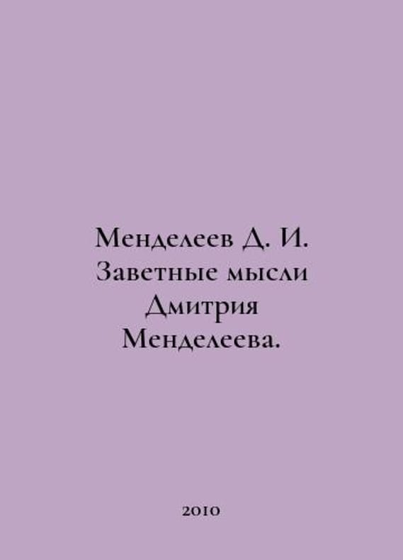 Mendeleev D. I. The cherished thoughts of Dmitry Mendeleev. In Russian /Mendeleev D. I. Zavetnye mysli Dmitriya Mendeleeva. Cherished Thoughts. Publishing House of the Sretensky Monastery, 2010.You are welcome to reach out to us for a detailed description of the copies currently available. SKUalb0e9952fa18ca5d51.