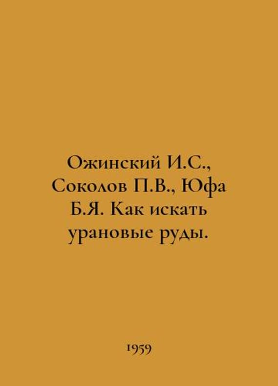 I.S. Ozhinsky, V. Sokolov, B.Ya. Yufa How to search for uranium ores. In Russian /Ozhinskiy I.S., Sokolov V., Yufa B.Ya. Kak iskat uranovye rudy. Series: Library of a participant of a geological campaign. M. Gosgeoltekhizdat. 1959..You are welcome to reach out to us for a detailed description of the copies currently available. Delivery of this book may take longer than usual including extended processing and pre-shipping time, no expedited shipping is available. Please advise us if you have a set date or a deadline to receive your order. SKUalb0ebe60863cda0b6f