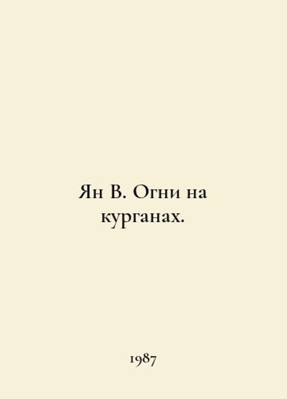 Ian V. Lights on the mounds. In Russian /Yan V. Ogni na kurganakh. M Sov. writer 1987. You are welcome to reach out to us for a detailed description of the copies currently available. Delivery of this book may take longer than usual including extended processing and pre-shipping time, no expedited shipping is available. Please advise us if you have a set date or a deadline to receive your order.SKUalb0ed83cf1da38df76