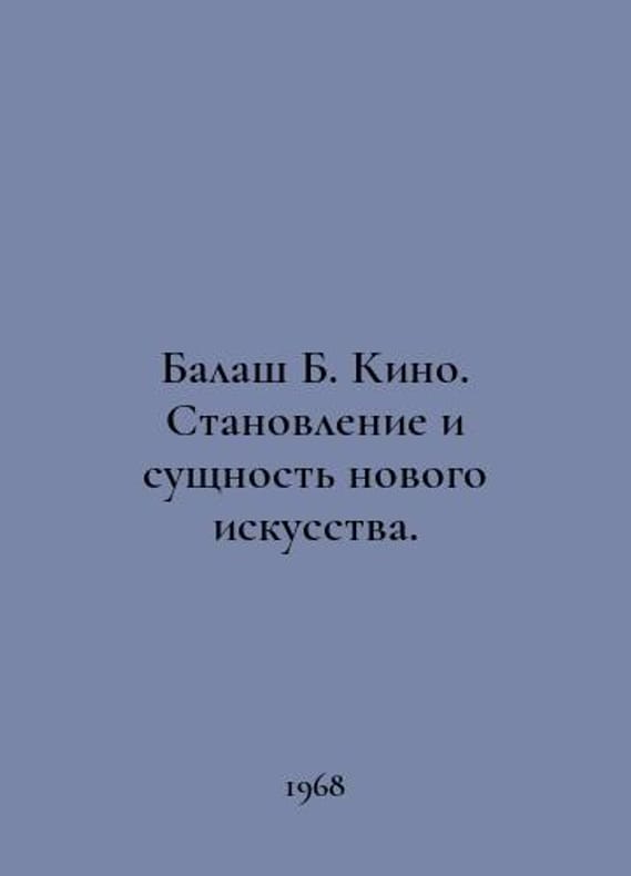 Balash B. Cinema. The Formation and Essence of New Art. In Russian /Balash B. Kino. Stanovlenie i sushchnost novogo iskusstva. M. Progress 1968. You are welcome to reach out to us for a detailed description of the copies currently available. SKUalb10d98bde7e3372ed.